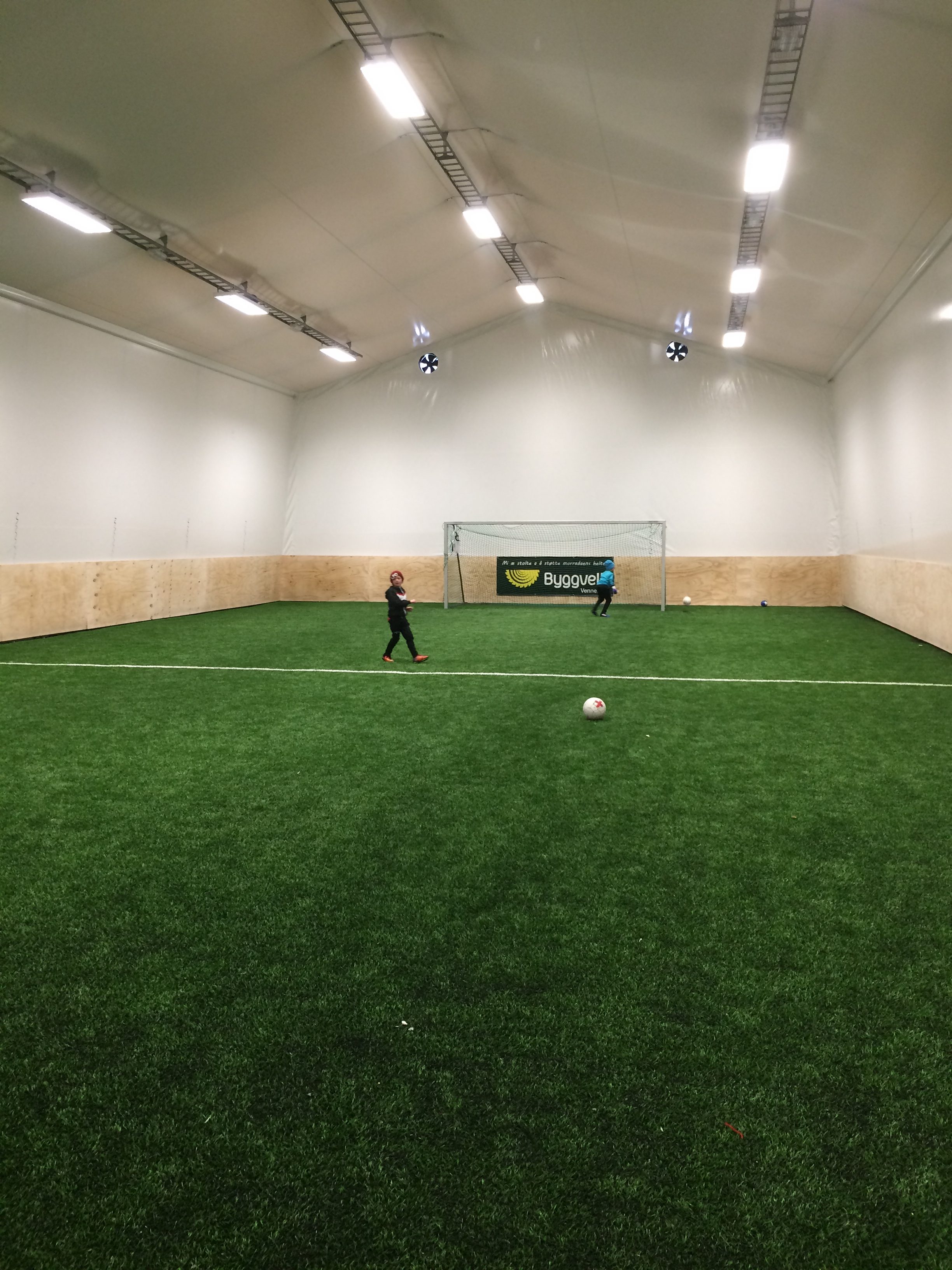 Hallen er av plast, har kunstgress, fantastisk LED-lys som gir råbillig strømregninger. Og hele greia koster kun 2,5 millioner kroner. Den er mao verdt sin vekt i gull.