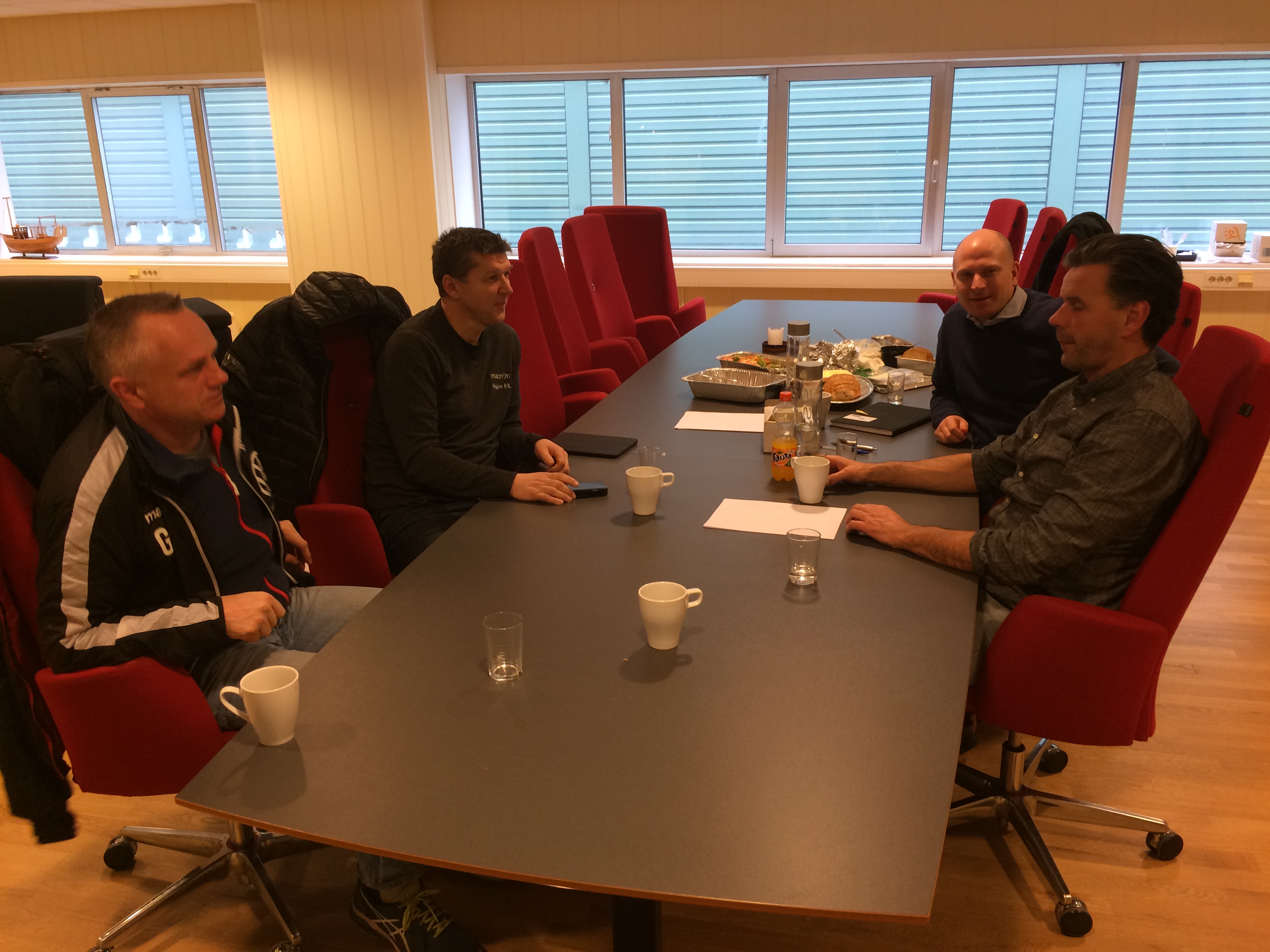 Søgne og VFK ved forhandlingsbordet. Fra venstre Gunnar Engebu og Reidar Ruden fra SFK. Til høyre VFK’s representanter, Øyvind Svendsen og Thomas Schie.